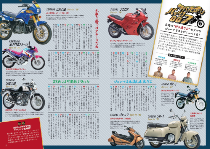 ¡¡ÆÃ½¸¤Ï¡¢250cc¤ÎÀäÈÇ̾¼Ö¡ª ¥ì¡¼¥µ¡¼¥ì¥×¥ê¥«¡¢¥Ó¥Ã¥°¥¹¥¯¡¼¥¿¡¼¡¢¥È¥é¥Ã¥«¡¼¡¢2¥¹¥È¥ª¥Õ¥í¡¼¥À¡¼¤Ê¤É¡¢¤«¤Ä¤Æ°ìÂç¥Ö¡¼¥à¤ò´¬¤µ¯¤³¤·¤¿²û¤«¤·¤Î250cc¥â¥Ç¥ë¤ò¡¢¤½¤Î»þÂå¤È¤È¤â¤Ë¿¶¤êÊ֤äƤ¤¤Þ¤¹¡£¤Þ¤¿¡¢¥ì¥¤¥¶¡¼¥é¥â¥óRG¤µ¤ó&¥Á¥å¡¼¥È¥ê¥¢¥ëÊ¡ÅĤµ¤ó¤Ê¤É¥Ð¥¤¥¯·Ý¿Í¤ò¤Ï¤¸¤á¤È¤¹¤ë¶È³¦´Ø·¸¼Ô¤¬Áª¤Ö¡Ö»×¤¤½Ð¤Î250cc¡×¤âÆÉ¤ß±þ¤¨ËþÅÀ¤Ç¤¹¡£